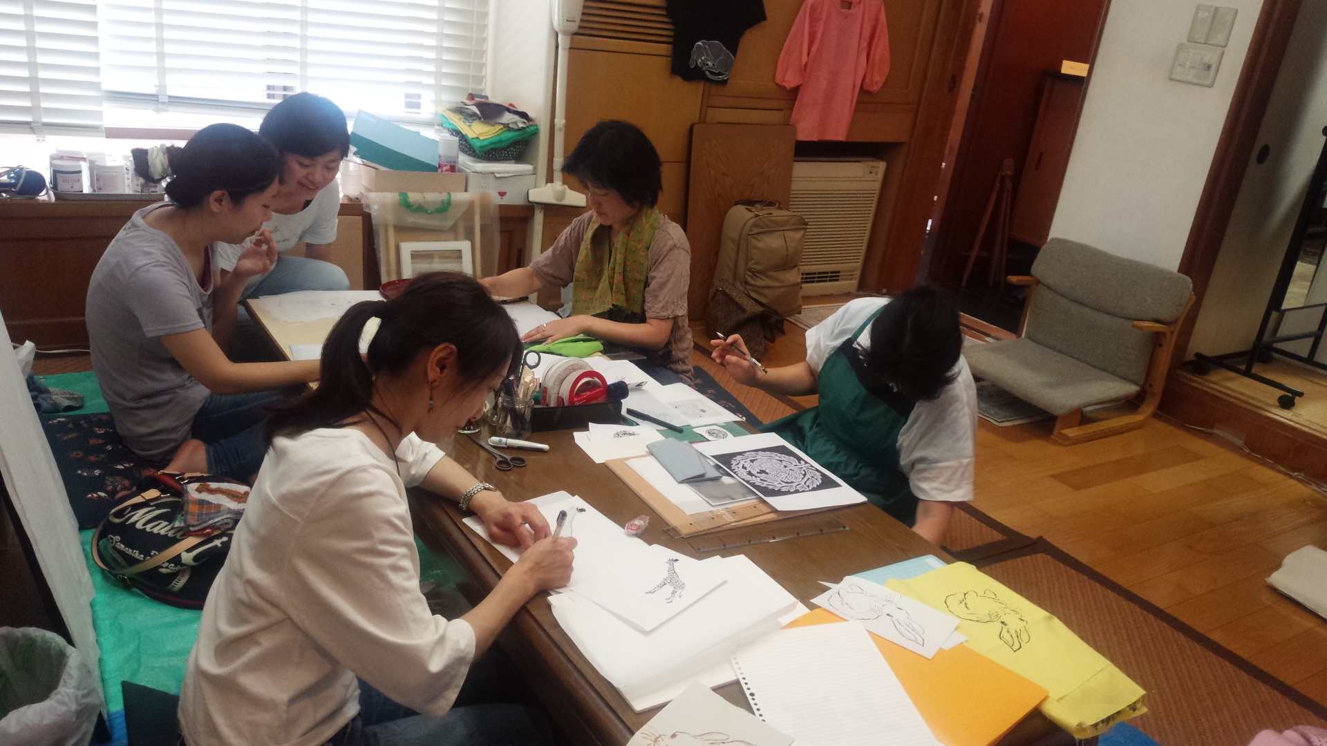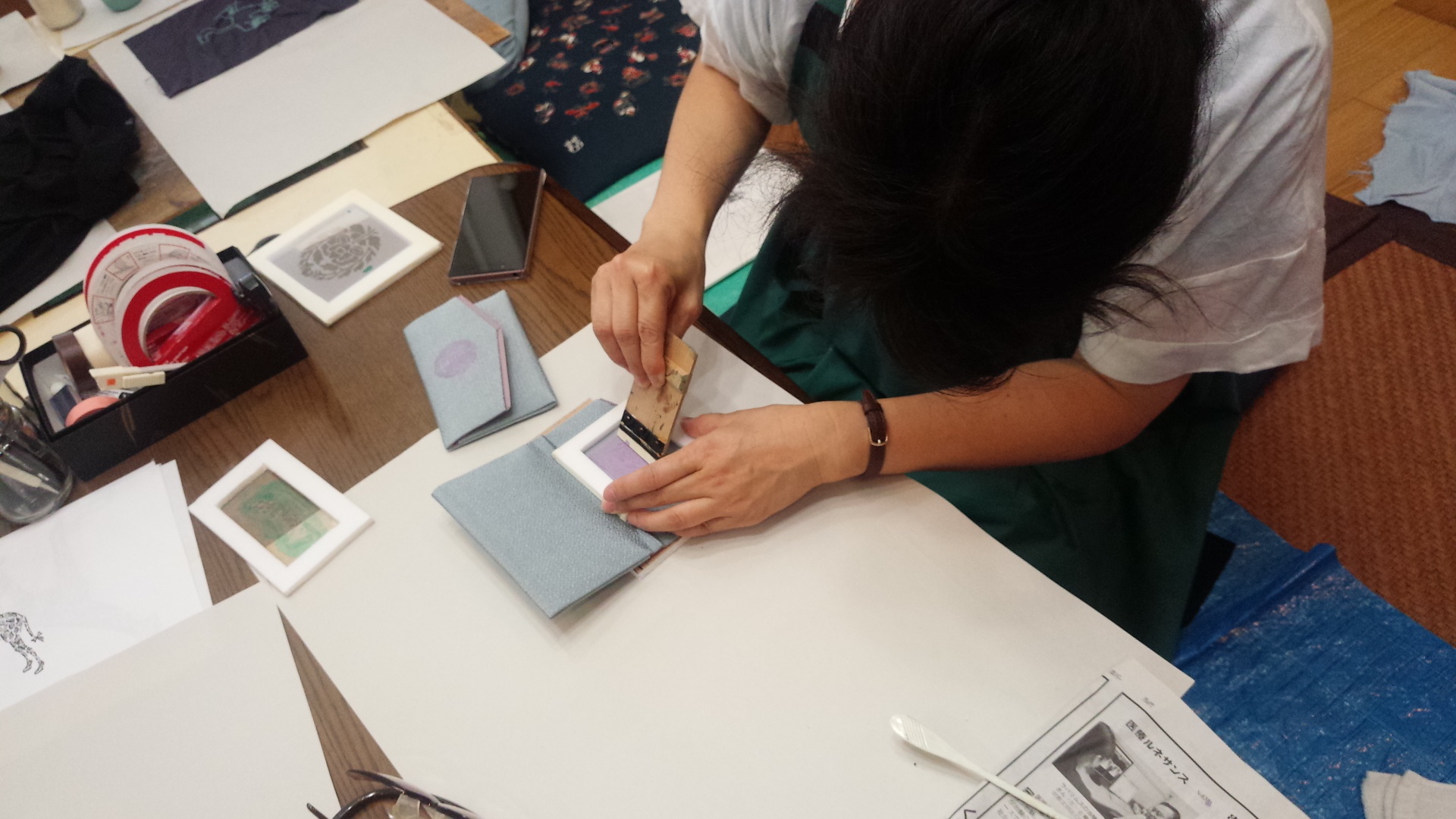 シルクスクリーンワークショップ 6/12はシルクスクリーンのワークショップでした。 あらかじめ、参加者さんからシルクスクリーンにしたい図柄を考えて来て頂いています。 図案を手直しして、シルクスクリーンに製版します 色糊を作り型置きをします。 それぞれの思いのこもったステキ❤な作品が出来ました。 2016年6月16日
