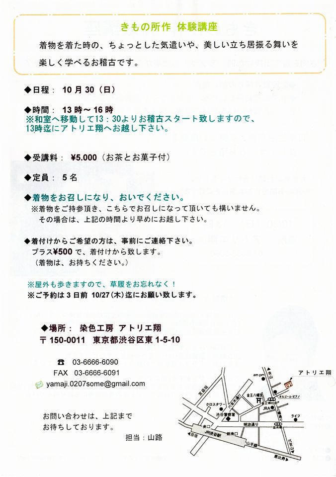 10月30日(日)に、【創作自由市場】のメンバーの花柳錦翠美先生に、所作指導を見て頂きます。